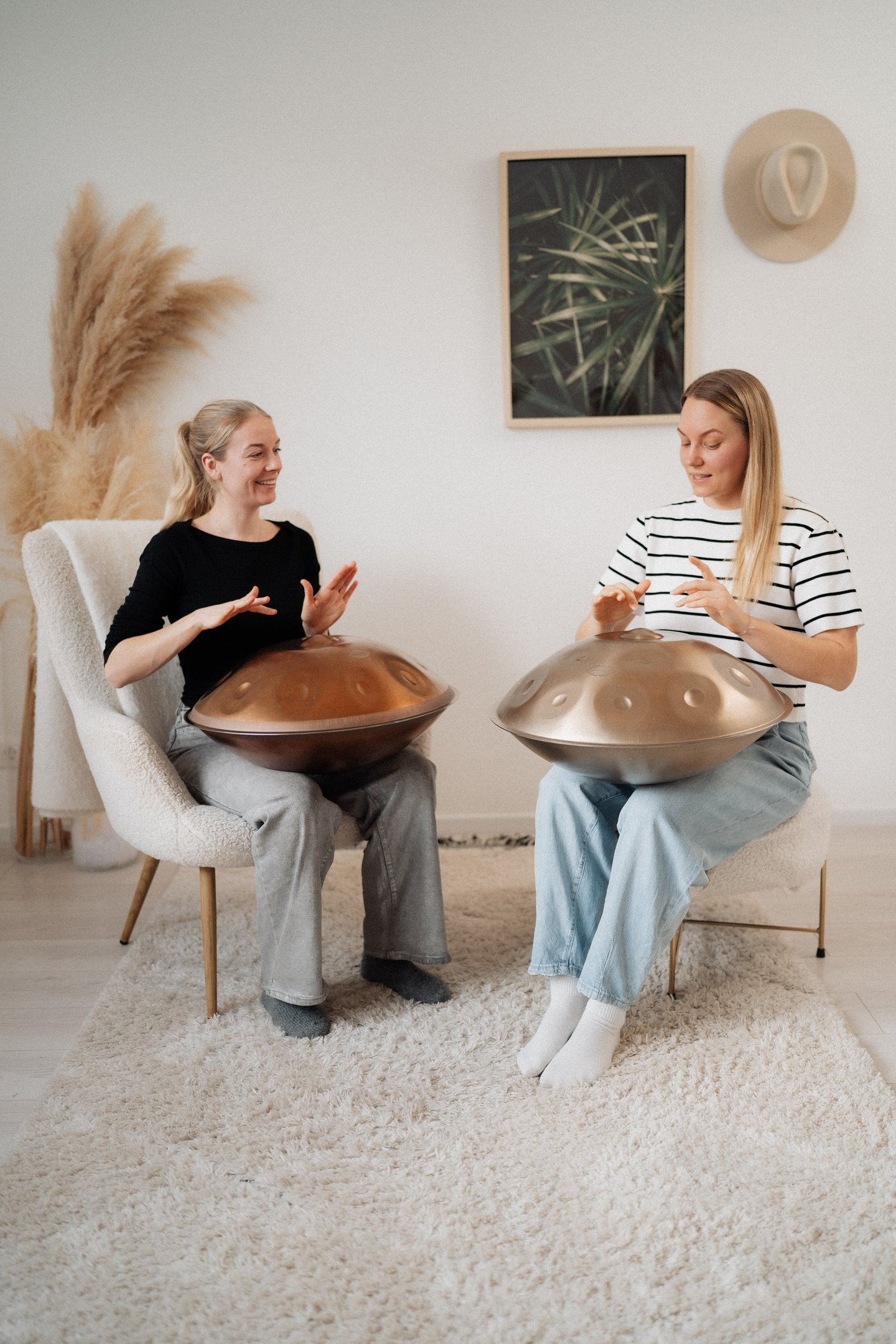 Kursai – tai kelių ar daugiau pamokų kelionė su ta pačia grupe, kai ne tik išbandom handpaną, bet tvirčiau jį pajuntam. Skirtingai nei pavienėse pamokose, čia mokomės nuosekliau: žingsnis po žingsnio dėliojam pagrindus, giliname techniką, daugiau improvizuojame ir kuriame ilgesnius, turtingesnius muzikinius kūrinius. Tai puikus pasirinkimas, jei norisi ne vienkartinės patirties, o tikro progreso ir aiškesnio pojūčio, kaip handpan gali tapti tavo nauju hobiu ar kūrybos forma.