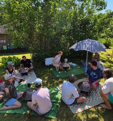Handpan užsiėmimus galiu atvežti ir į jūsų pasirinktą vietą — studiją, namus, biurą, sodybą ar net gamtą. Tai jauki ir įtraukianti patirtis, kurioje dalyviai ne tik susipažįsta su instrumentu, bet ir patys kuria muziką kartu. Užsiėmimą pritaikau pagal grupę, progą ir norimą atmosferą: nuo ramių, meditatyvių sesijų iki žaismingų, kūrybiškų muzikinės improvizacijos ratų. Optimalus dalyvių skaičius iki 15-20.